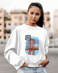 Introducing our custom printed sweatshirt with a unique “Lets Travel” design print!