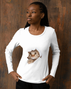 So why wait? Order your custom printed “Peeping Cat” long sleeve t-shirt today and add some feline charm to your style!